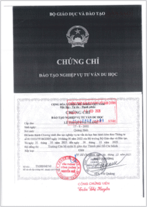 • Chứng chỉ: Chứng chỉ tư vấn du học theo quy định của Bộ GD&ĐT